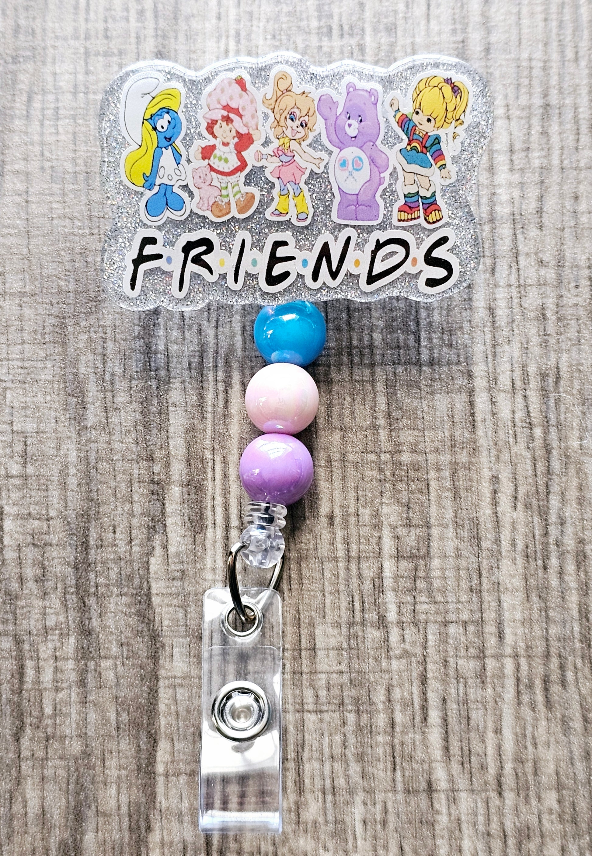 Take a nostalgic trip back to the 80s with this retro cartoon badge reel! Featuring a design inspired by beloved animated characters, including a blue-haired woodland friend and a strawberry-loving favorite, this badge holder is styled with a classic sitcom-inspired font for a fun, vintage touch. Crafted with UV resin, glitter, E6000 glue, acrylic, a sturdy plastic alligator clip reel, and playful plastic beads, it’s perfect for adding a pop of nostalgia to your workday.