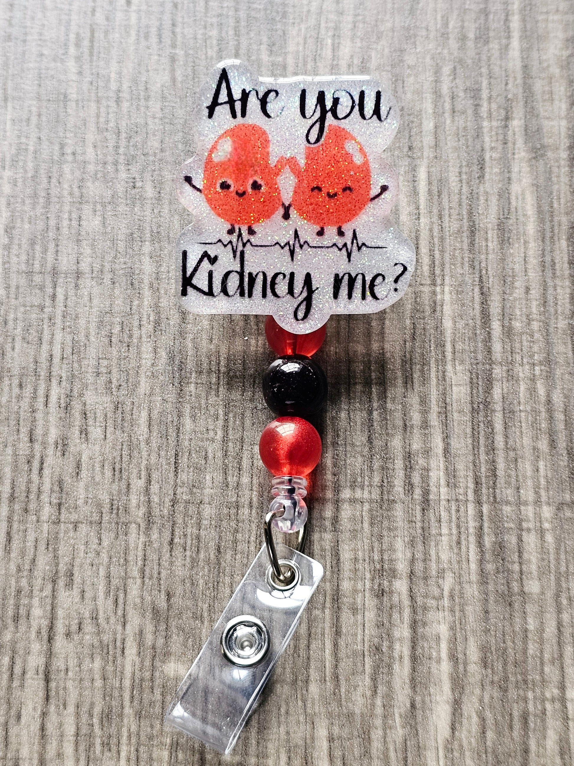 Add a dose of medical humor to your workday with the "Are You Kidney Me?" badge reel! Featuring two adorable, smiling kidney characters, this ID holder is great for nurses, doctors, and healthcare professionals. Crafted with UV resin, glitter, E6000 glue, acrylic, a plastic alligator clip reel, and playful plastic beads, it’s as sturdy as it is fun!