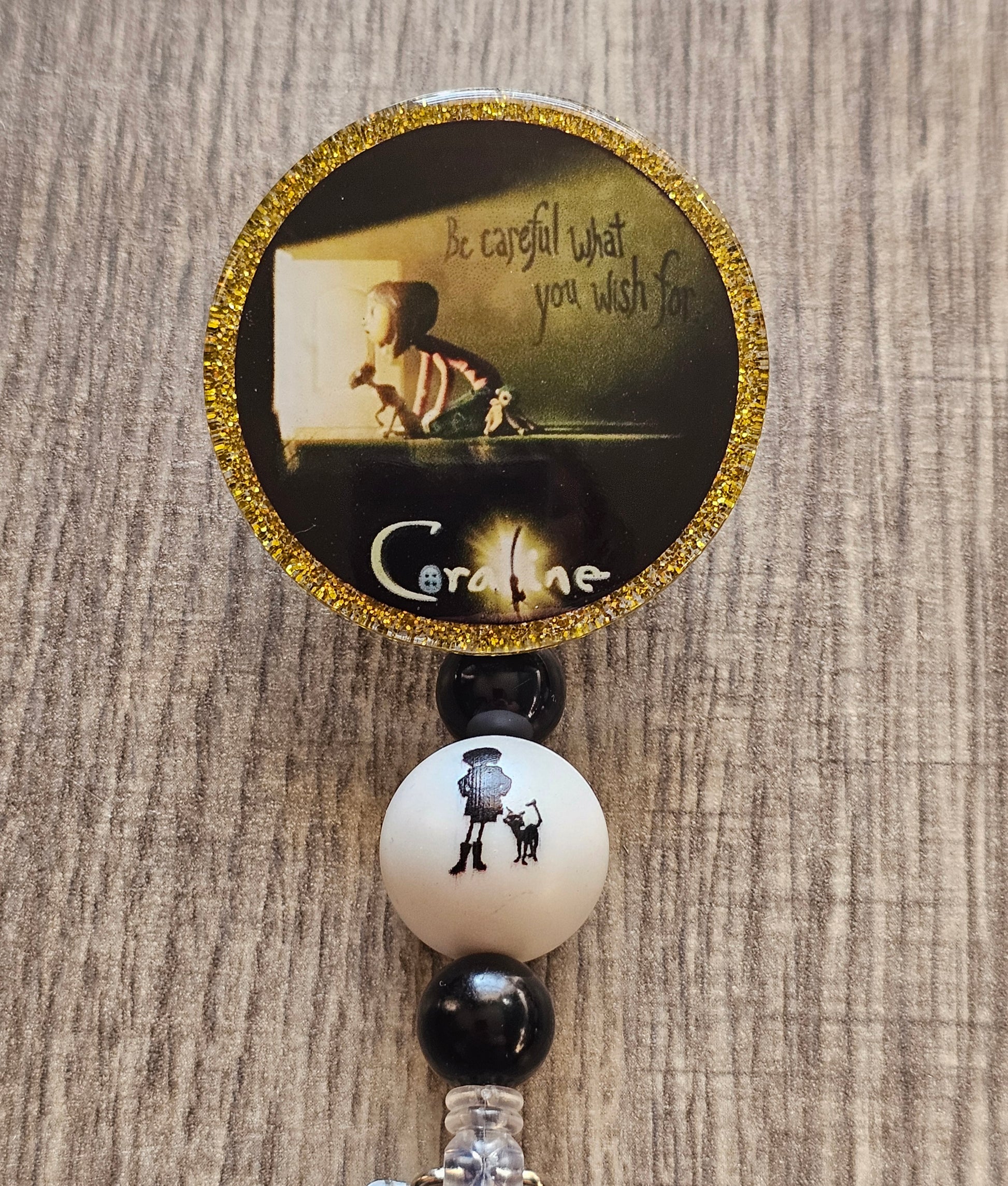 Handcrafted with care, this badge reel features a combination of UV resin, glitter, E6000 glue, acrylic, plastic alligator clip reel, and playful plastic beads. Each element comes together to create a unique and stylish accessory that stands out.