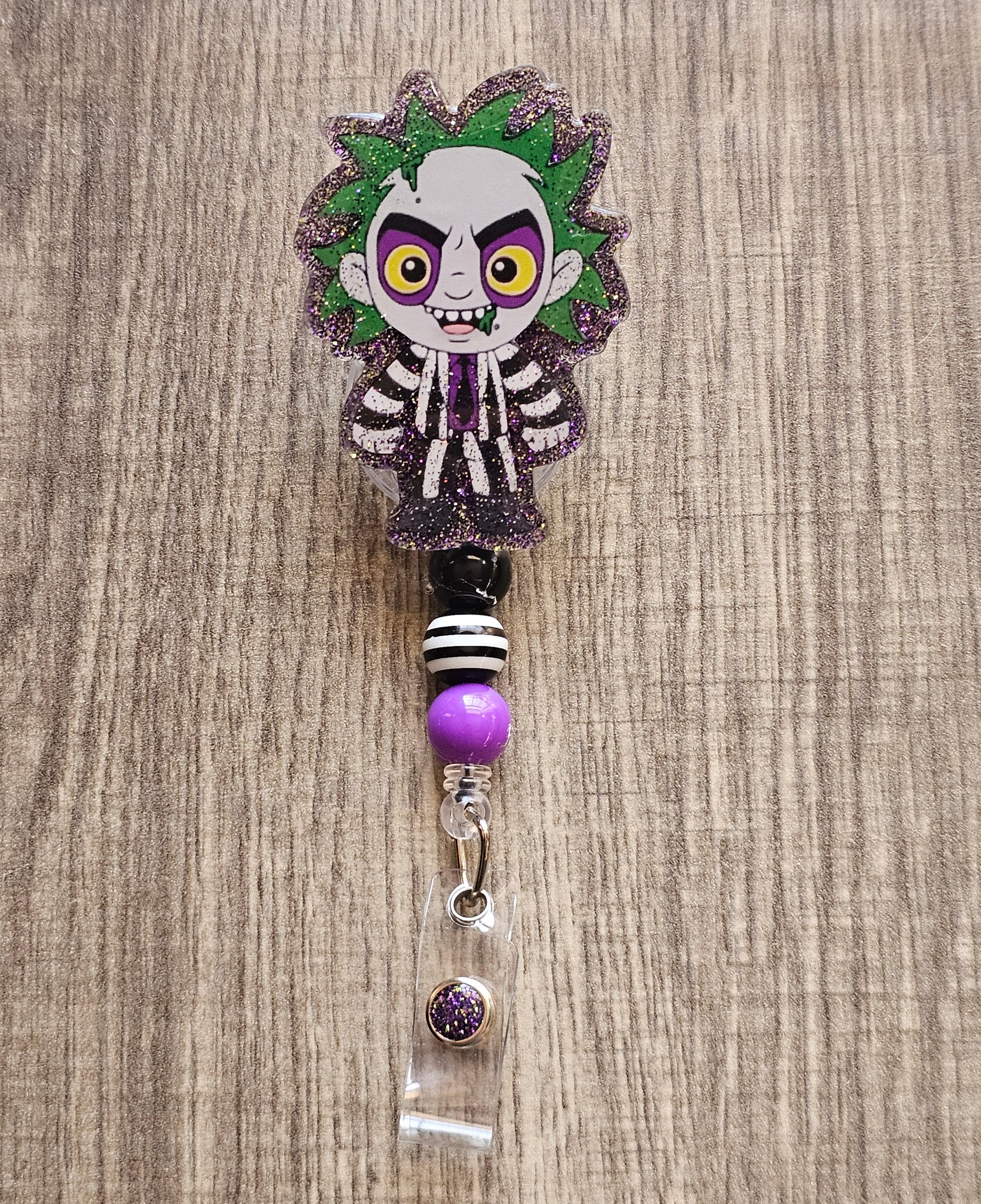 Handcrafted with care, this badge reel features a combination of UV resin, glitter, E6000 glue, acrylic, plastic alligator clip reel, and playful plastic beads. Each element comes together to create a unique and stylish accessory that stands out.