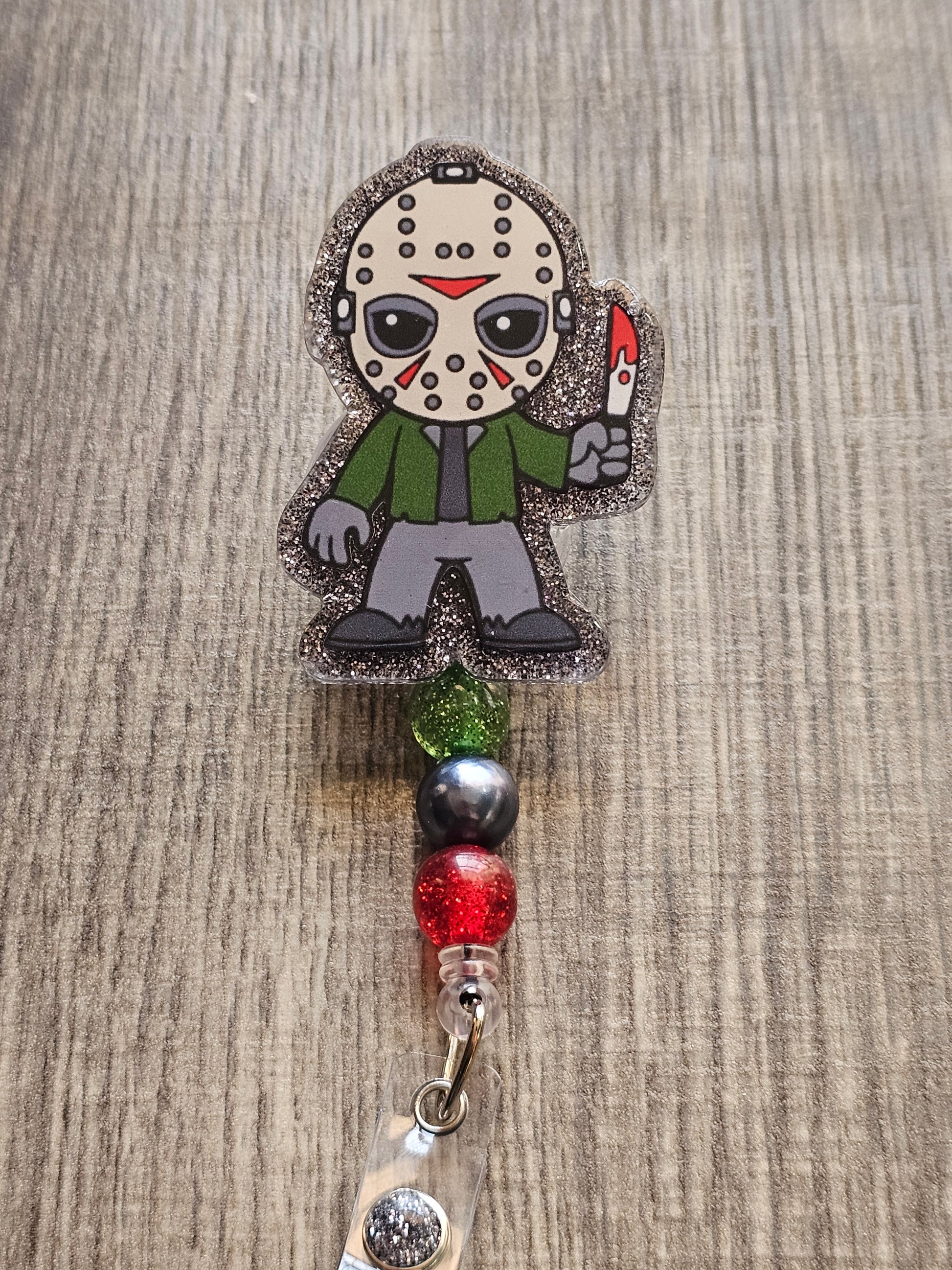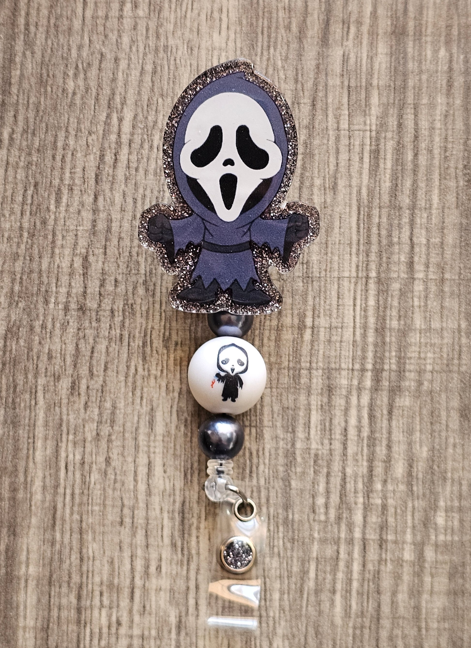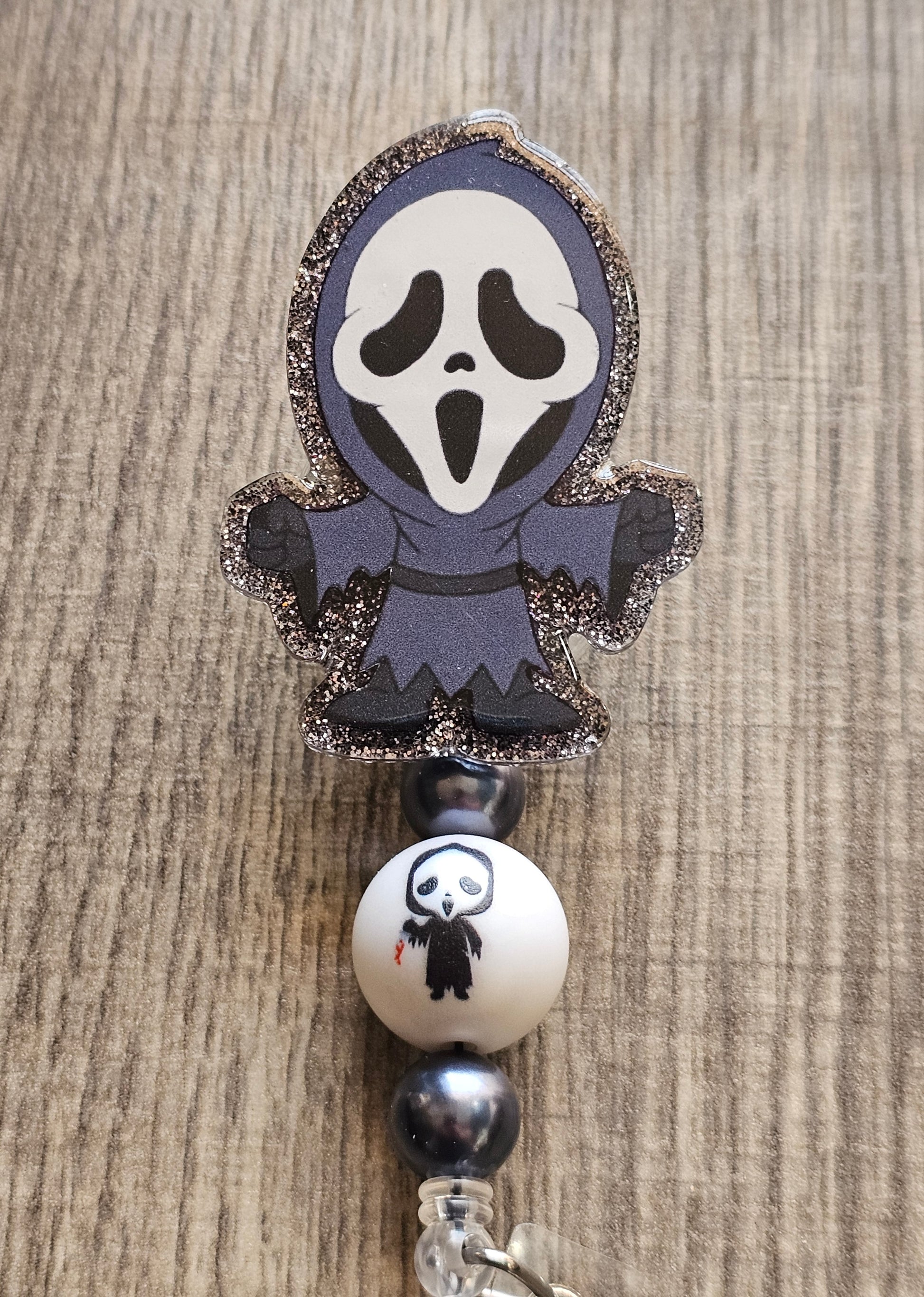 Unleash the ultimate horror with our Haunted Villains Badge Reel Collection! This chilling set draws inspiration from some of the most feared characters in horror history, including a striped mischief-maker, a masked slasher holding a knife, a terrifying killer clown with a wicked grin, hockey mask reaper, and a ghost-faced figure that sends shivers down your spine. Perfect for fans of spooky films and Halloween enthusiasts, these badge holders are designed to showcase your love for horror while adding a touch of fright to your everyday wear. Ideal for healthcare workers, teachers, or anyone with a taste for the eerie and unique.