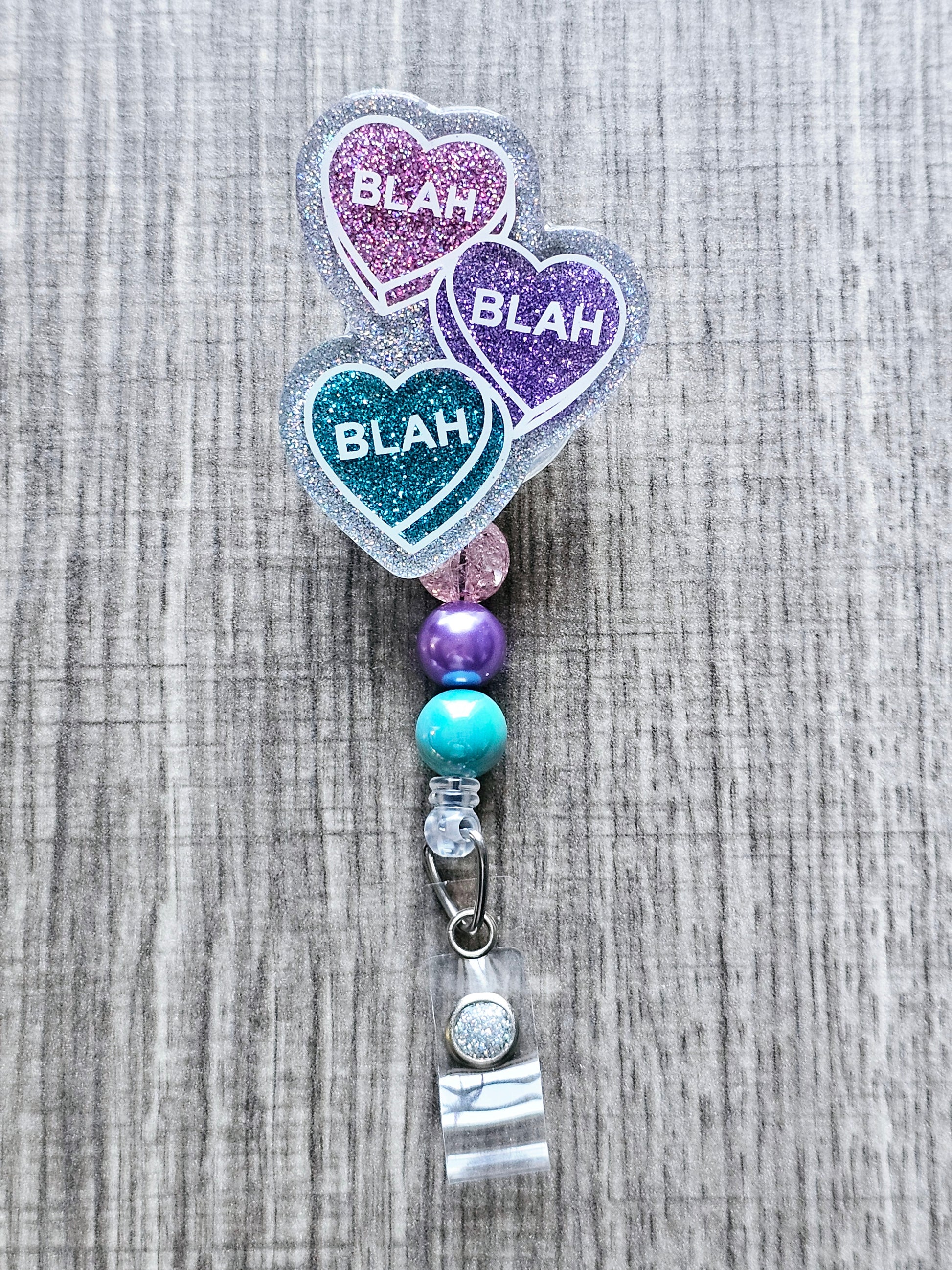 Handcrafted with care, this badge reel features a combination of UV resin, glitter, E6000 glue, acrylic, plastic alligator clip reel, and playful plastic beads. Each element comes together to create a unique and stylish accessory that stands out.