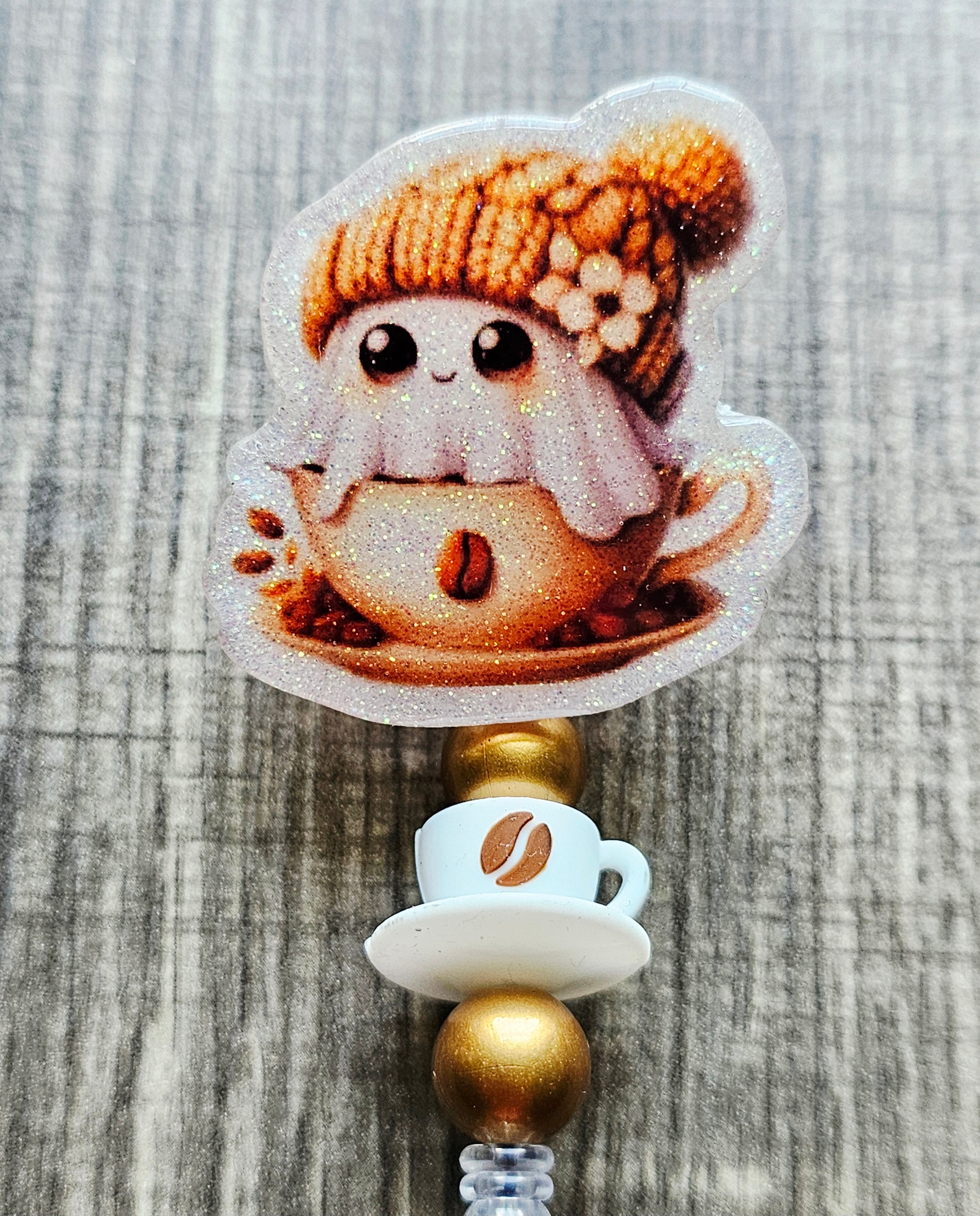 Cute Coffee Ghost Badge Reel | Fall & Halloween Themed Badge Reel