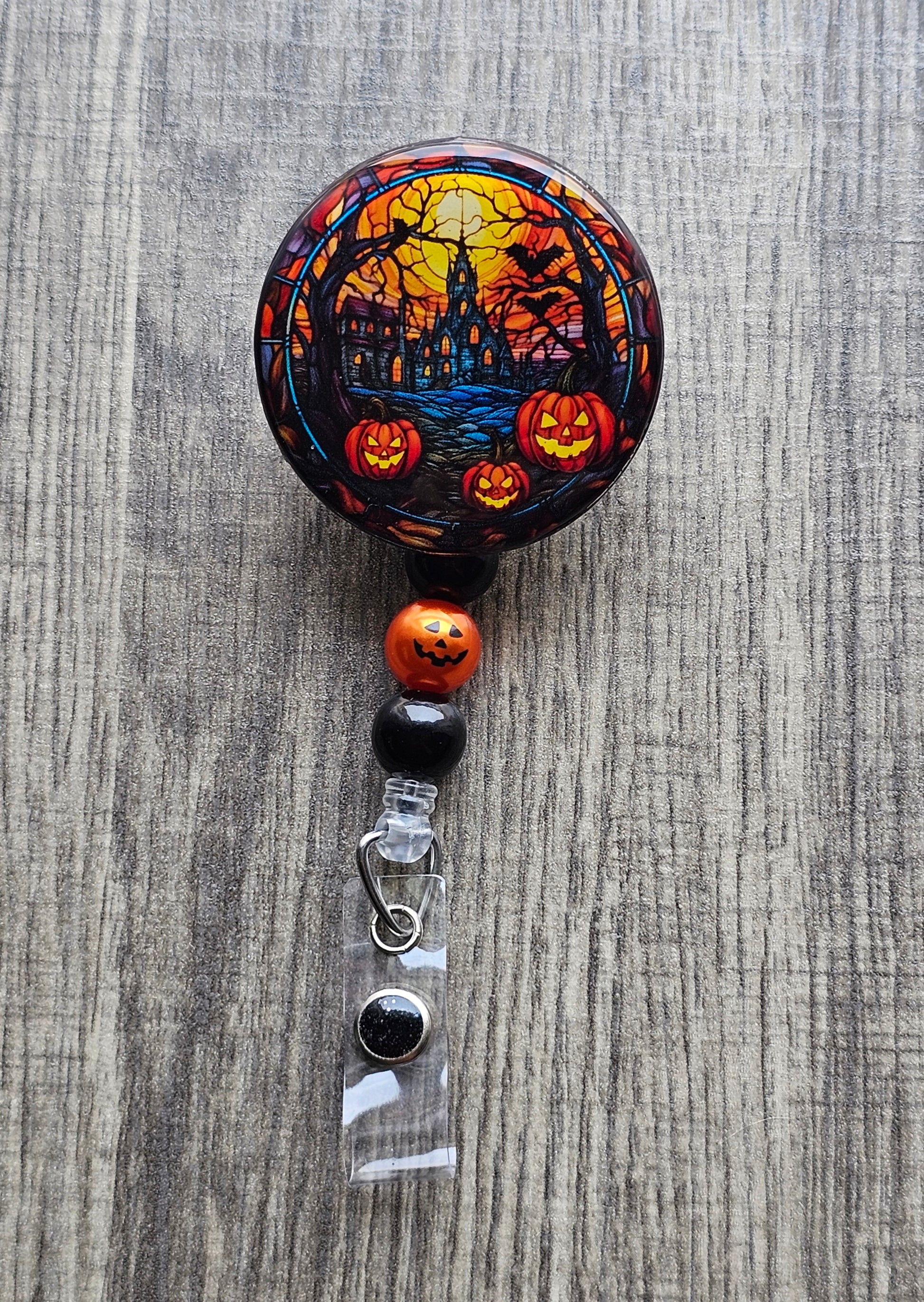 Step into the hauntingly beautiful world of Halloween with our 'Eerie Castle' Badge Reel! Featuring a spooky castle surrounded by leafless trees adorned with bats and accompanied by three glowing Jack-O-Lanterns, this badge reel perfectly captures the essence of the season. Ideal for nurses, teachers, and anyone who loves to embrace the eerie side of autumn, this accessory adds a touch of mystery and Halloween spirit to your daily routine. Let this badge reel be your gothic companion as you navigate through your tasks, bringing a sense of enchantment and spookiness to your workday!