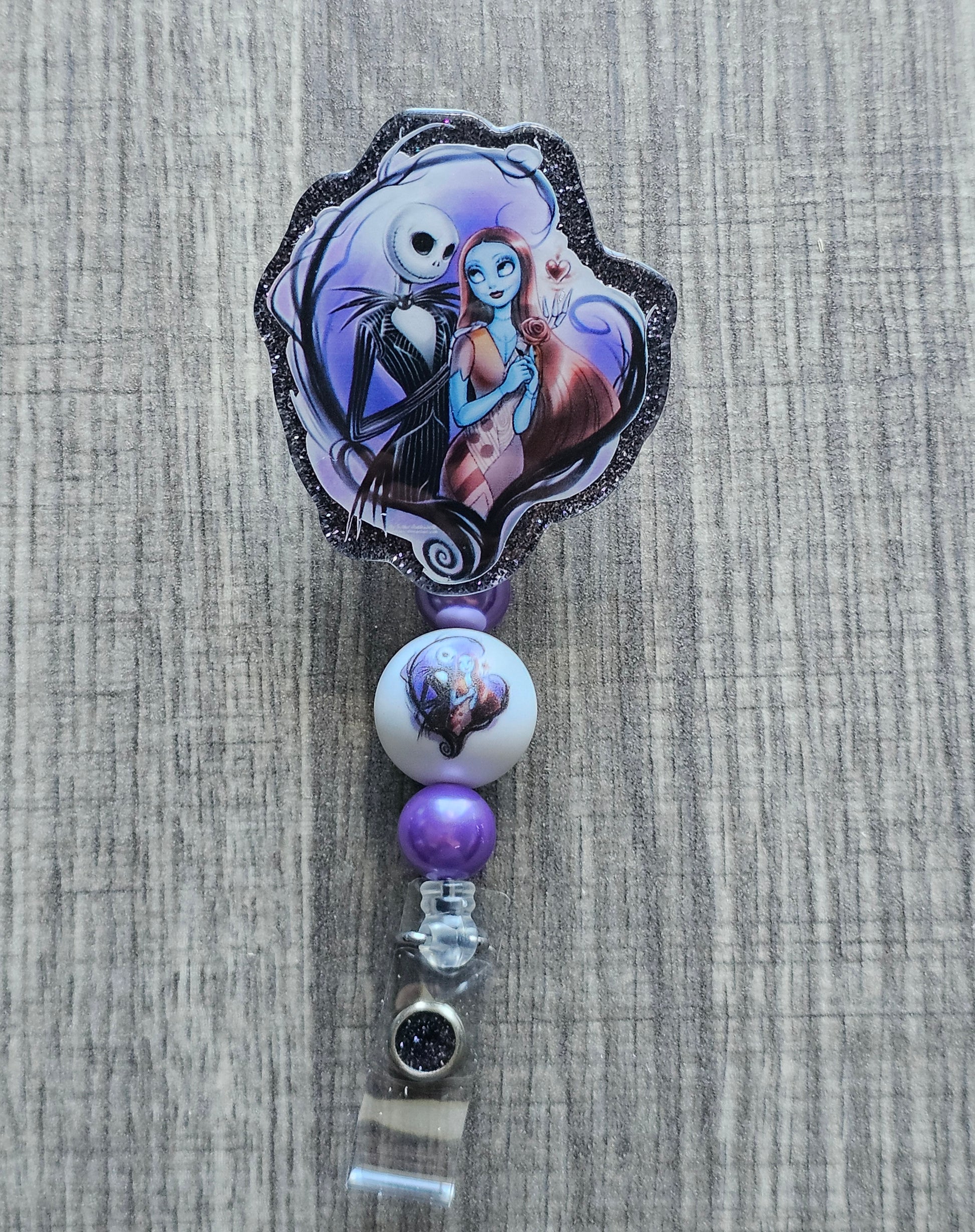 Celebrate your love with our Enchanted Romance Badge Reel! This custom badge holder features a charming couple in a spooky theme, perfect for nurses, teachers, and professionals. Durable and retractable, it's a unique way to add personality to your ID display. Ideal for fans of gothic romance and mischievous charm.