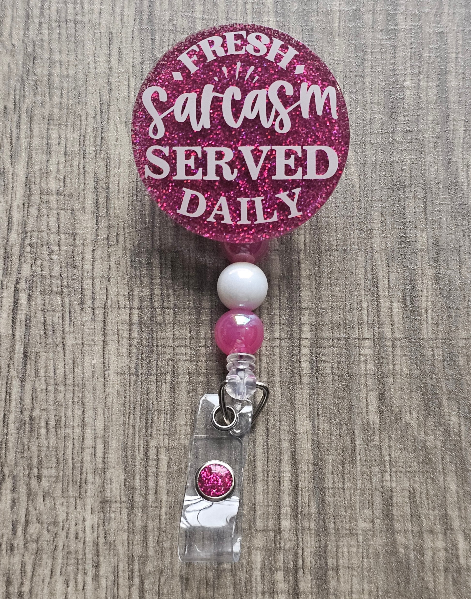 Add a dash of humor to your workday with the "Fresh Sarcasm Served Daily" Badge Reel! Available in a variety of vibrant colors, this badge reel is perfect for those who love to keep things witty and playful. Whether you're in the healthcare field, teaching, or any professional setting, this badge holder brings personality to your ID while keeping it secure. Its durable design ensures long-lasting use, making it a great addition to your daily essentials. Show off your sarcastic side with style and keep your badge handy, all while serving up fresh sarcasm every day!