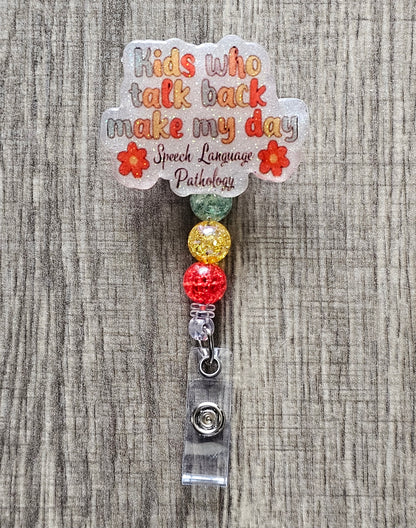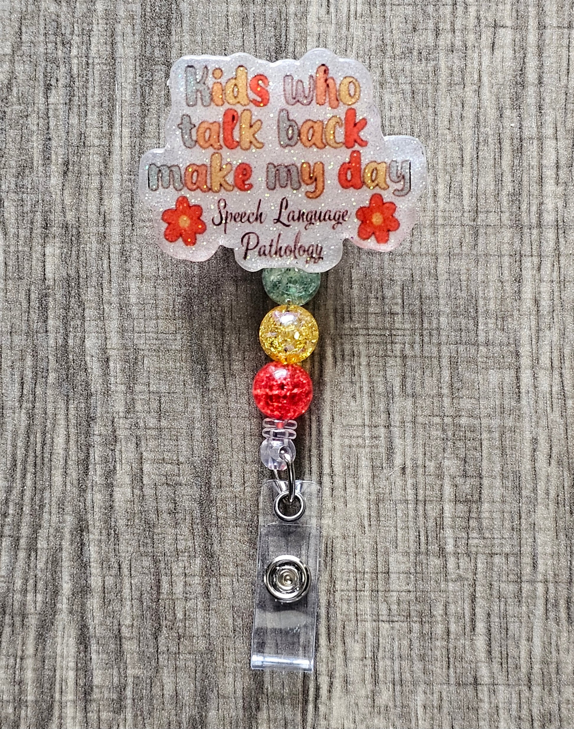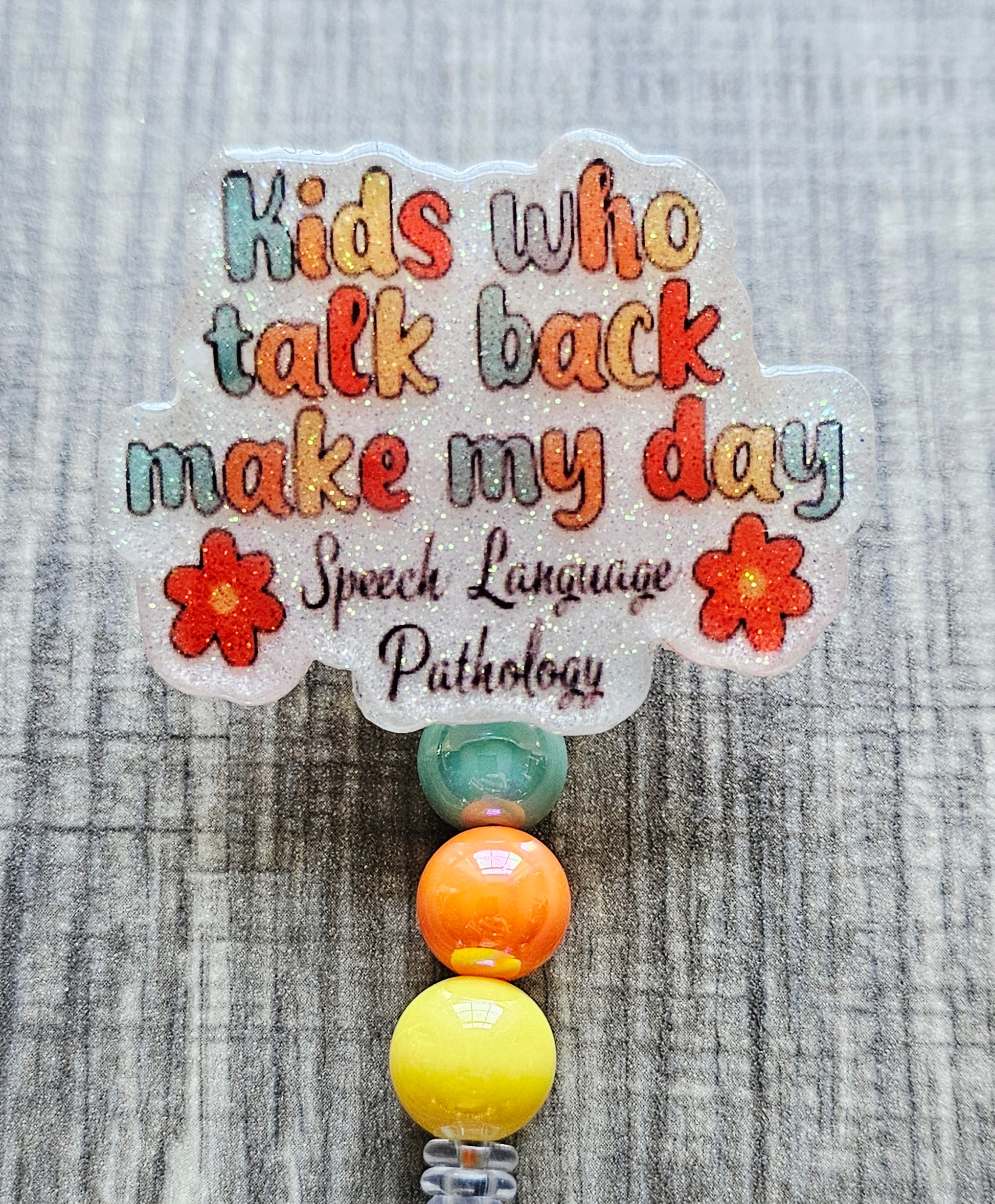 Add a touch of humor to your day with our "Kids Who Talk back make my day" badge reel, designed especially for Speech Language Pathologists. This witty and relatable accessory is sure to be a conversation starter.