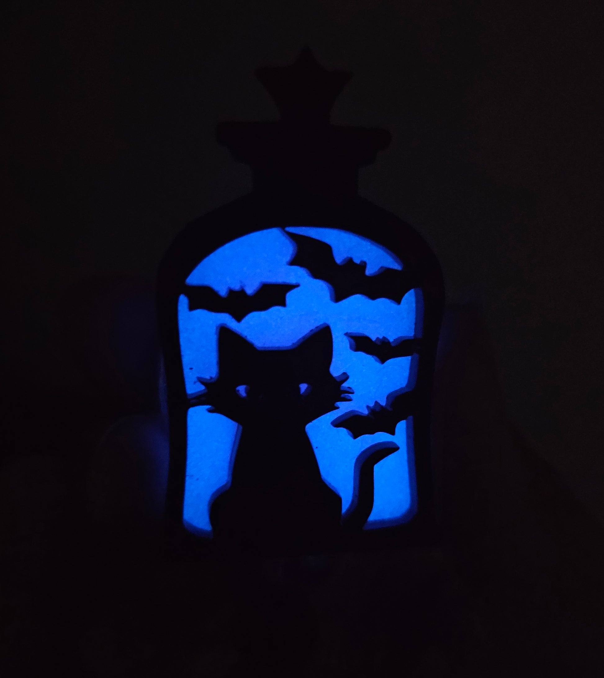 Glow-in-the-Dark Lantern Cat Badge Reel - Purple Eerie Charm