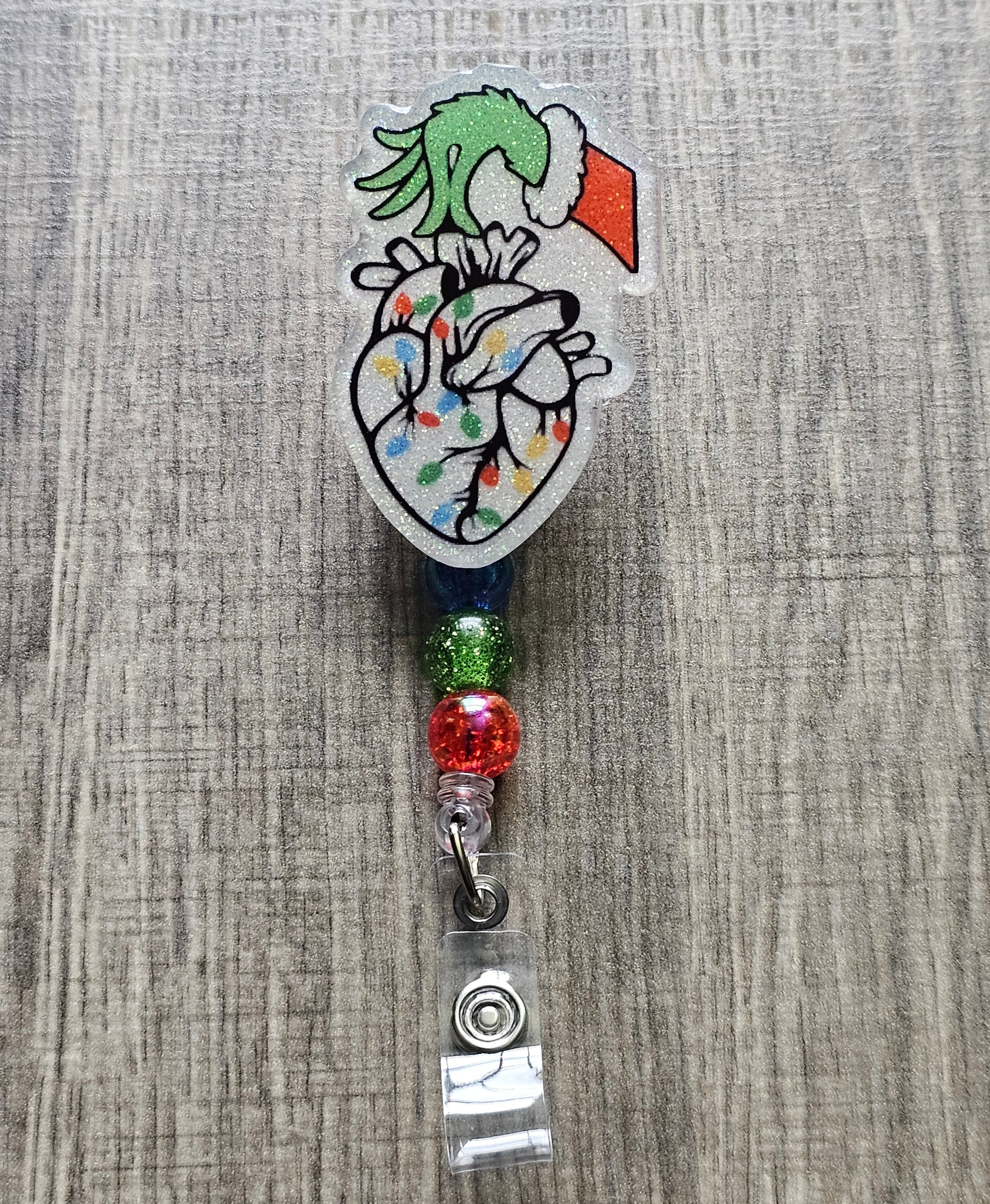 Brighten up your holiday season with this festive Grinch Cardiology Badge Reel featuring a playful design inspired by Christmas cheer! Displaying a well known mischievous hand wearing a cozy Christmas sweater, delicately holding a heart adorned with twinkling Christmas lights. Perfect for adding a touch of holiday magic to your workday, this badge holder is an excellent choice for spreading seasonal joy while keeping your ID secure. Ideal for healthcare workers, teachers, or anyone looking to embrace the holiday spirit with a functional and stylish accessory. Get ready to celebrate Christmas in style!