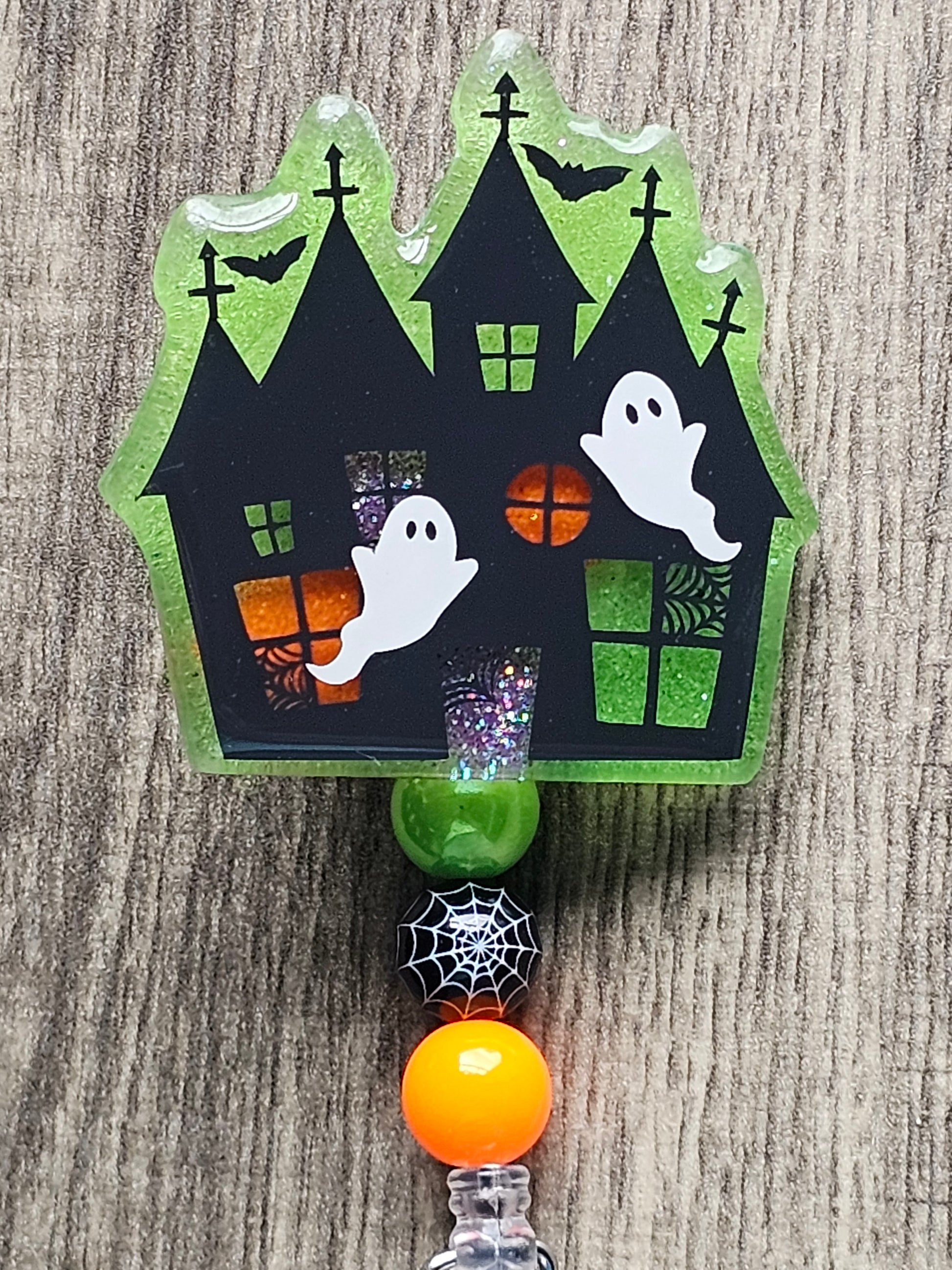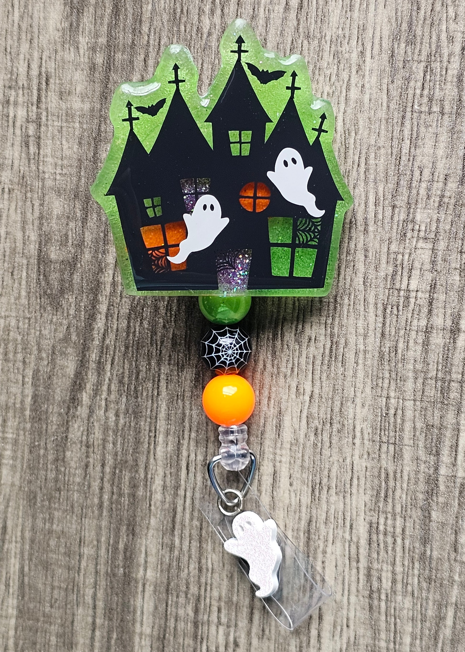 Step into the spooky season with our Haunted House Badge Reel featuring eerie ghosts gliding along a mysterious mansion. This Halloween-inspired badge reel is designed for those who love the thrill of the season and want to add a touch of haunting charm to their everyday attire. Whether you're a nurse, teacher, or any professional, this unique badge holder is perfect for showcasing your festive spirit in a fun and memorable way. The intricate design of the haunted house, paired with the playful ghosts, makes this badge reel a standout accessory that's sure to spark conversations and bring a smile to everyone's face. Embrace the Halloween spirit with this spooky yet stylish badge reel, and let it be your go-to accessory for the season!