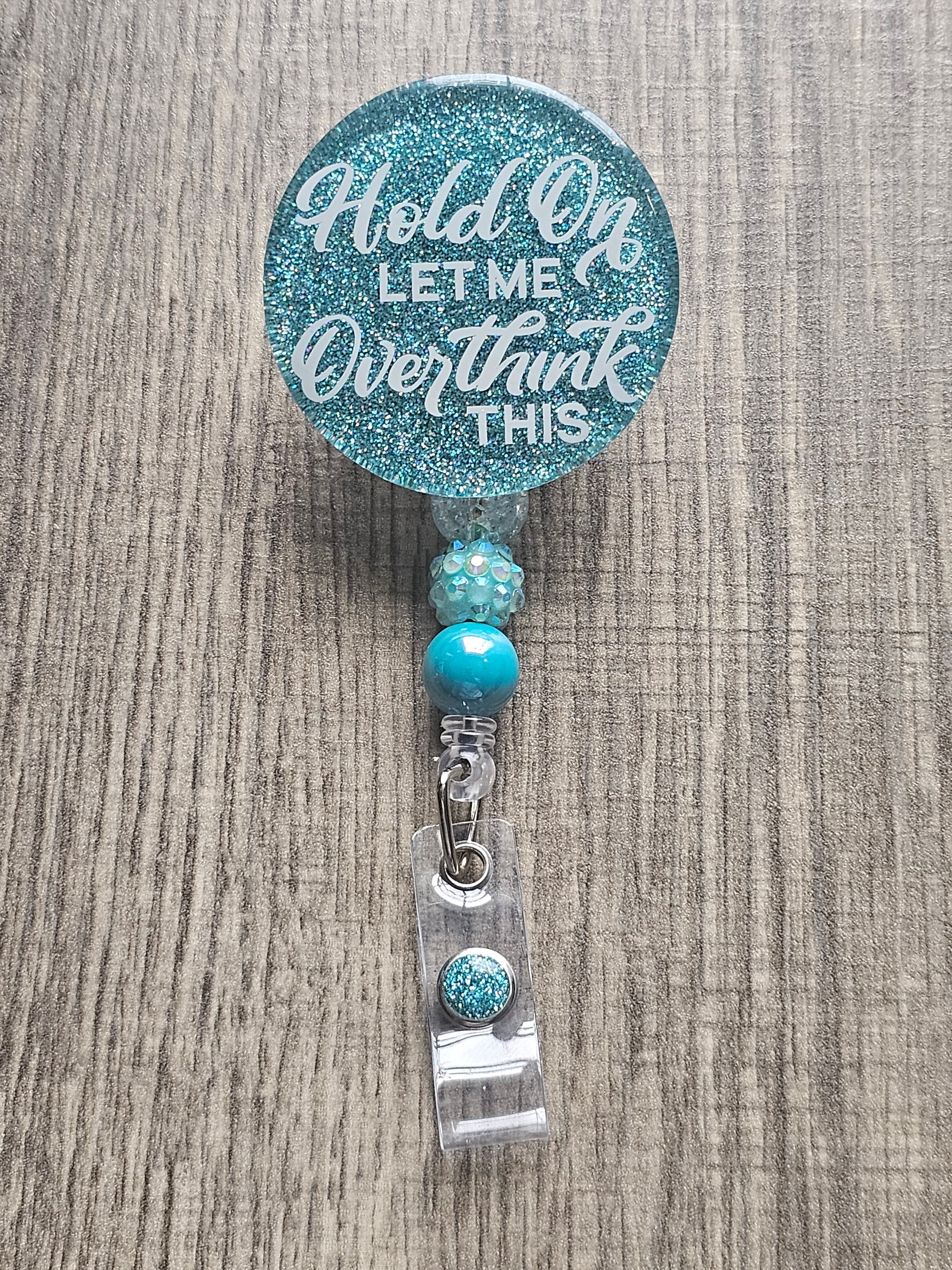 Express your inner overthinker with the "Hold On, Let Me Overthink This" Badge Reel! Designed for those who can't help but analyze every detail, this badge reel adds a fun and relatable touch to your everyday work or school accessories. Perfect for nurses, teachers, or anyone who needs to keep their ID close at hand, this reel blends practicality with a humorous design. Whether you're in the office or on the go, let this badge holder be a quirky conversation starter while keeping your essentials secure. Ideal for overthinkers who like to stay stylish and organized!