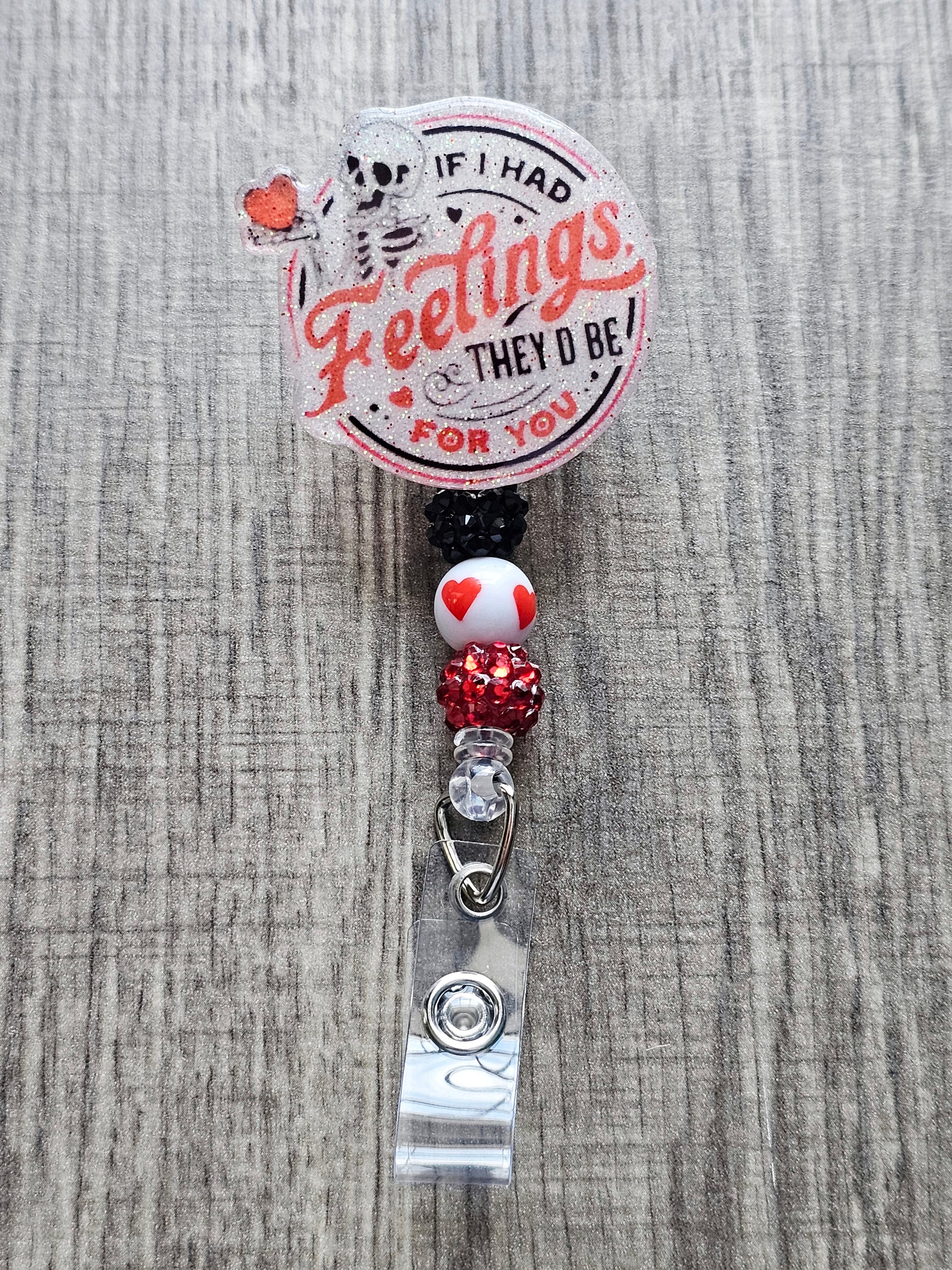 Add a fun and darkly romantic twist to your workday with this unique Valentine's Day badge reel! Featuring a playful skeleton holding a heart alongside the witty phrase, "If I had feelings, they'd be for you," this reel is perfect for those who love a little gothic charm with their holiday spirit. Whether you're a nurse, teacher, or office professional, this ID holder is sure to spark smiles and conversation!