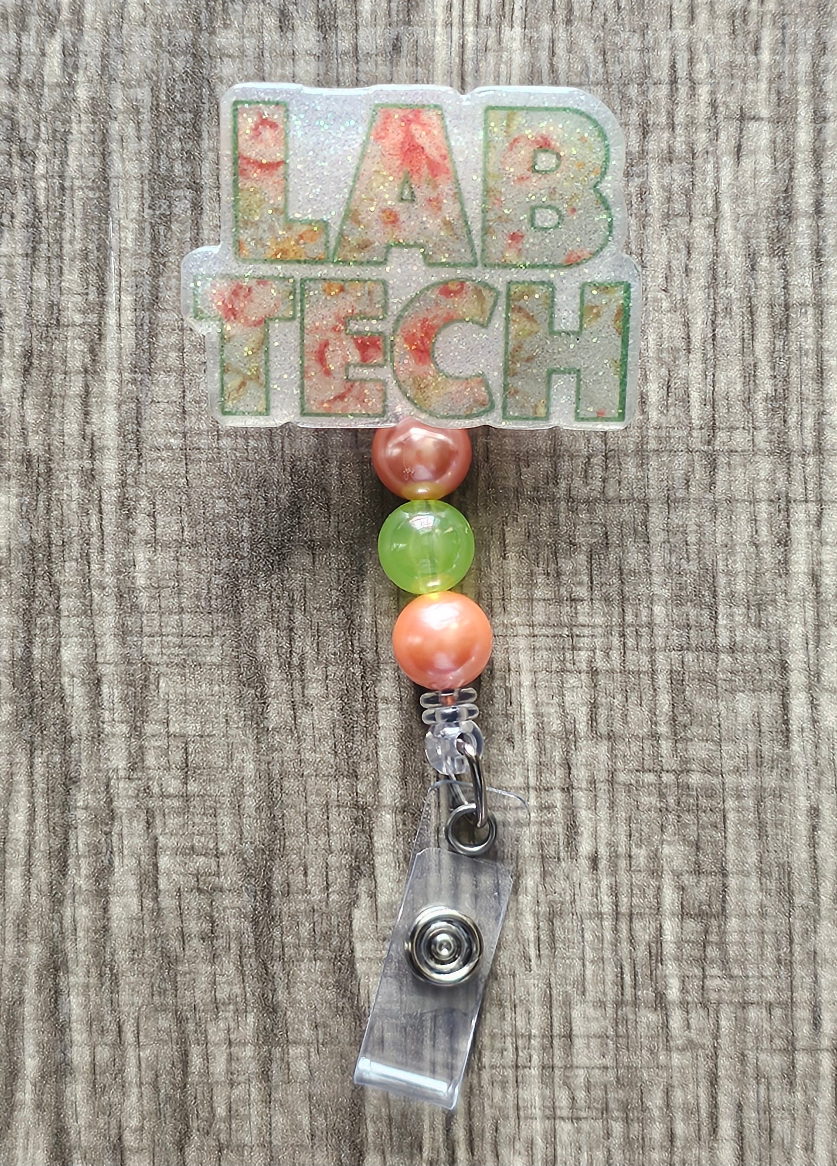 "LAB TECH" Floral Letter Retractable Badge Reel