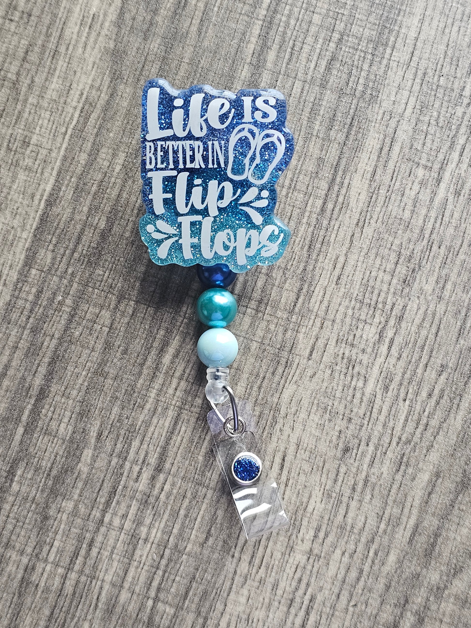 Step into the sunshine every day with our 'Life is Better in Flip Flops' badge reel! Embrace the carefree spirit of beachside bliss as you navigate your day with a touch of coastal charm. Perfect for nurses, teachers, and professionals, this badge holder showcases the laid-back vibe of sandy shores and endless summer days. Let your ID journey reflect the relaxed spirit of the beach life. It's time to flip, clip, and embrace the sunny vibes with this charming and functional accessory! Ideal for anyone who loves the beach, this badge reel adds a fun, summery touch to your everyday routine.