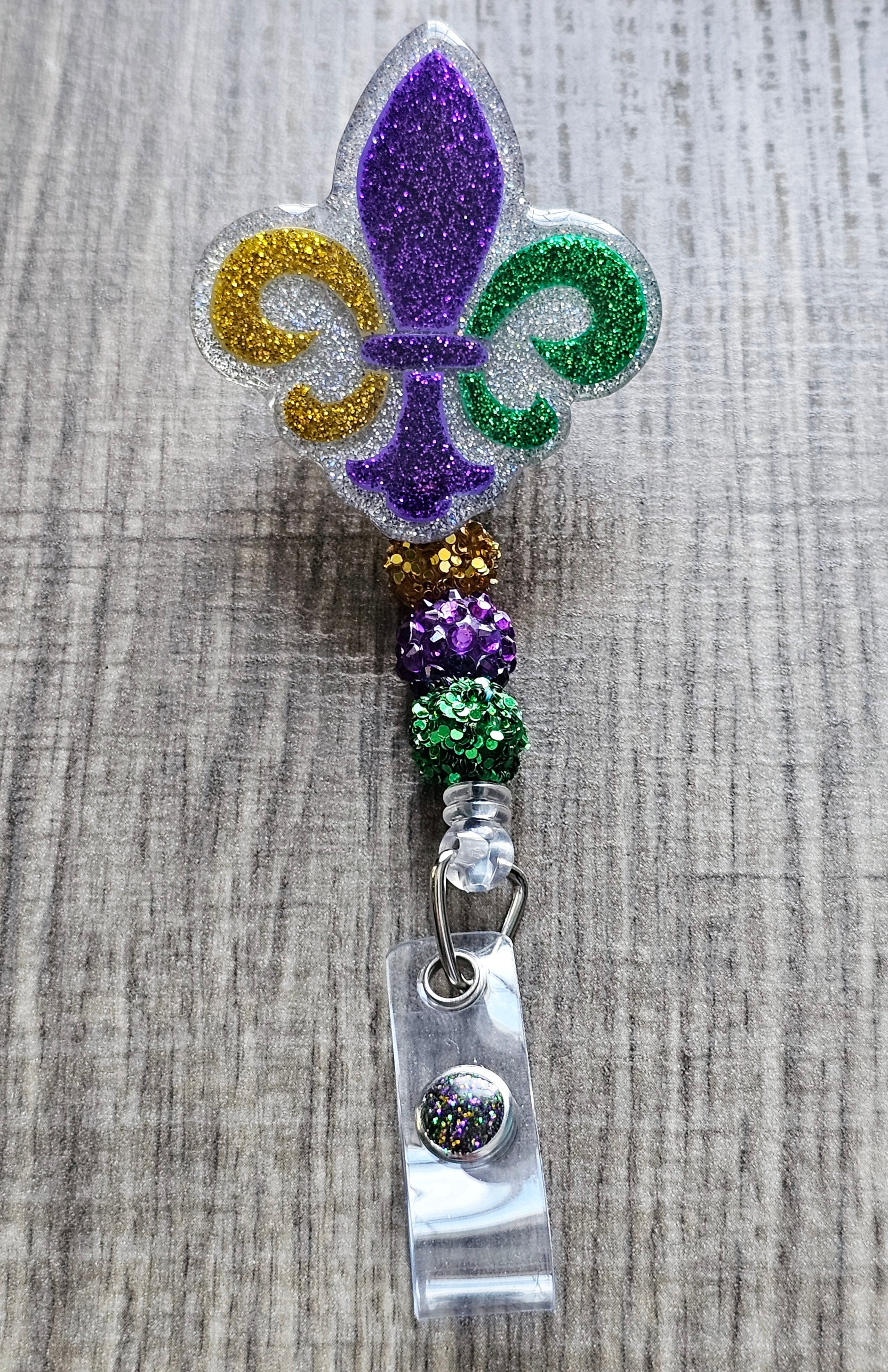 Show off your festive spirit with this Mardi Gras Fleur de Lis Badge Reel, the perfect blend of tradition and flair! Featuring the iconic Fleur de Lis in classic purple, green, and gold, this badge holder is a must-have for the season.