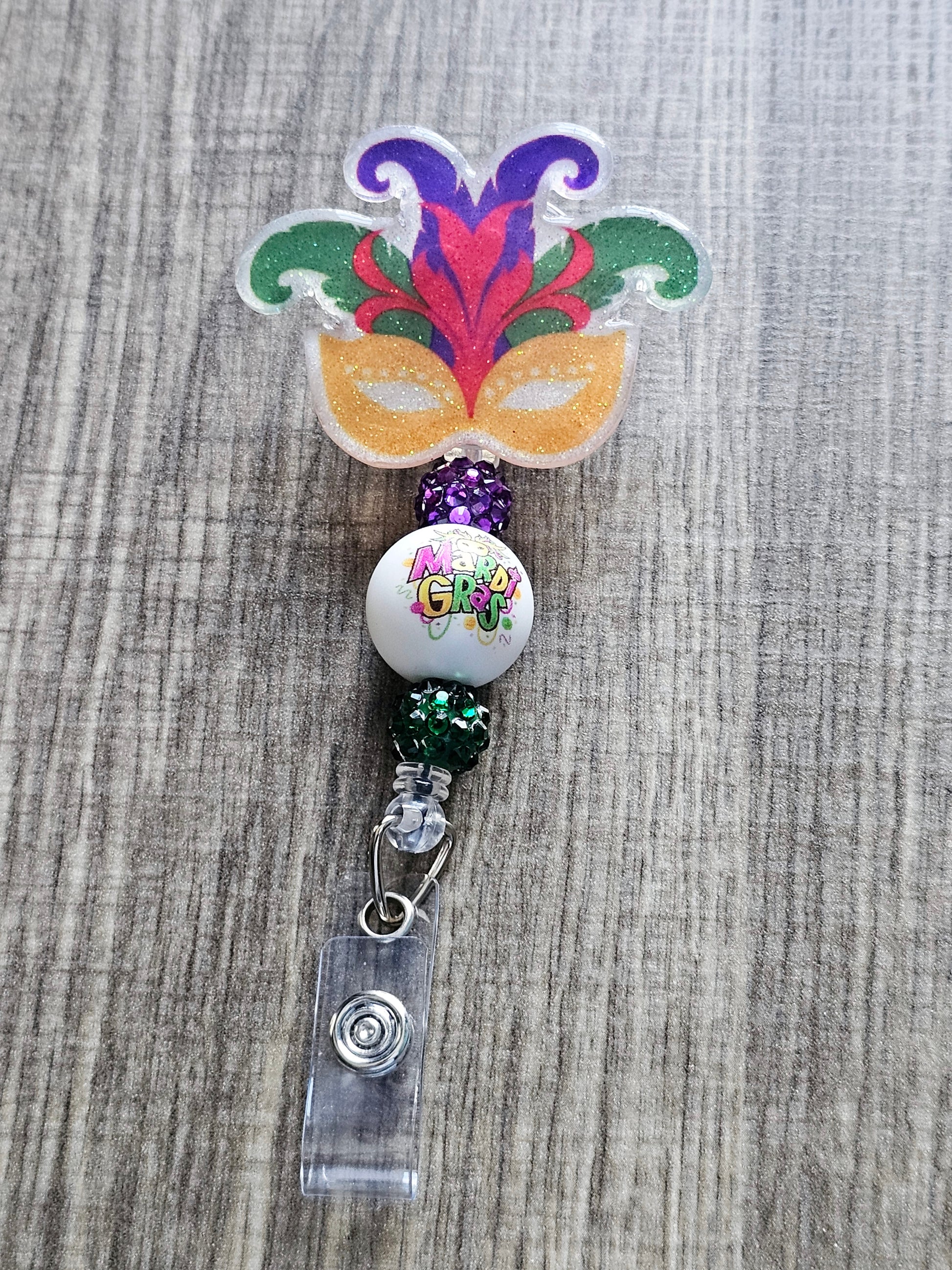Let the good times roll—grab your Mardi Gras badge reel today!