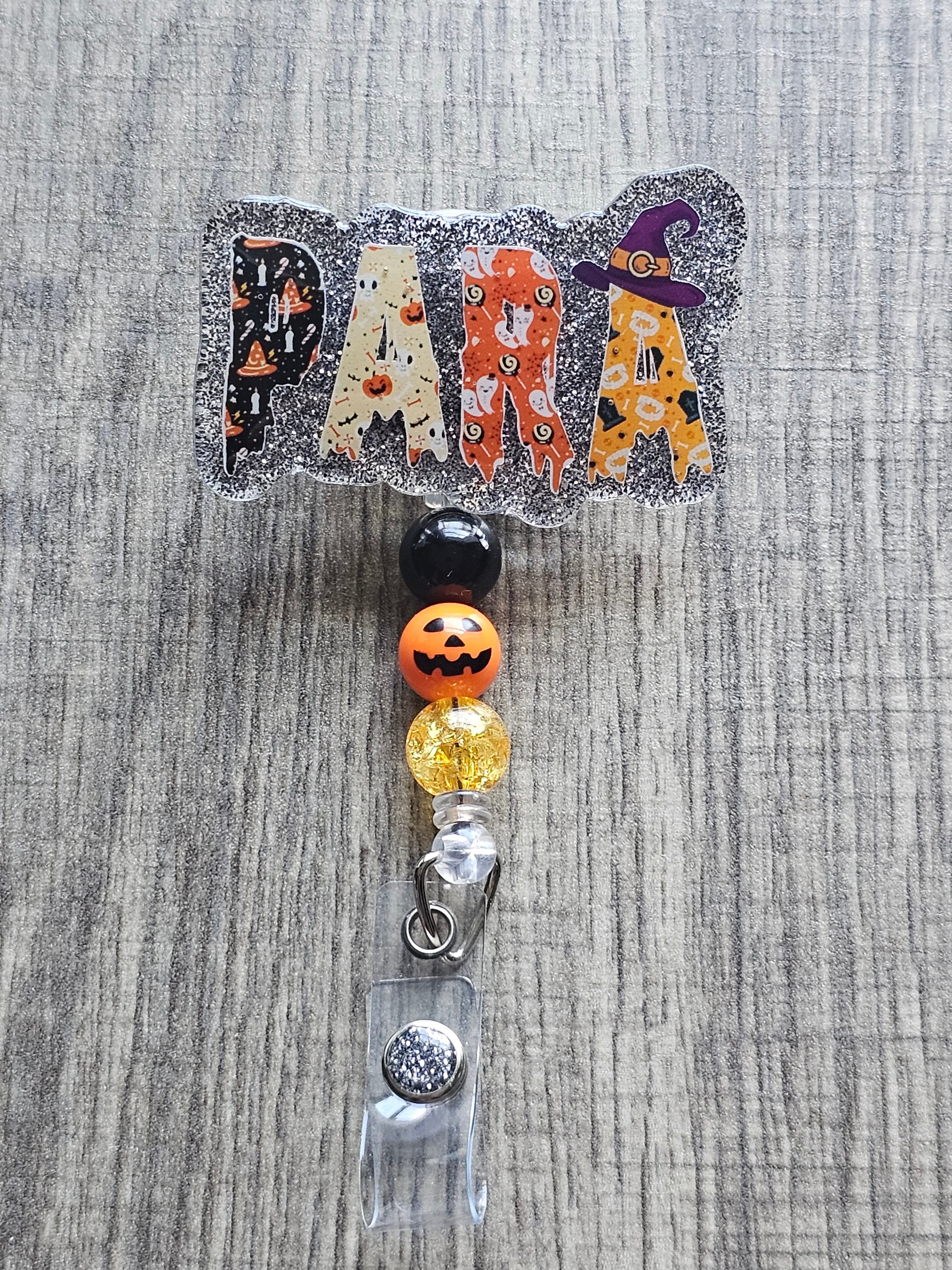 Paraprofessional Halloween Badge Reel: Spooky and Stylish. This Halloween-themed badge reel celebrates the invaluable work of paraprofessionals with the word 'Para' in a spooky font, perfect for adding a touch of festive flair to your daily routine. Perfect for teachers, nurses, and professionals, let your badge reel reflect your unwavering dedication and celebrate your role!