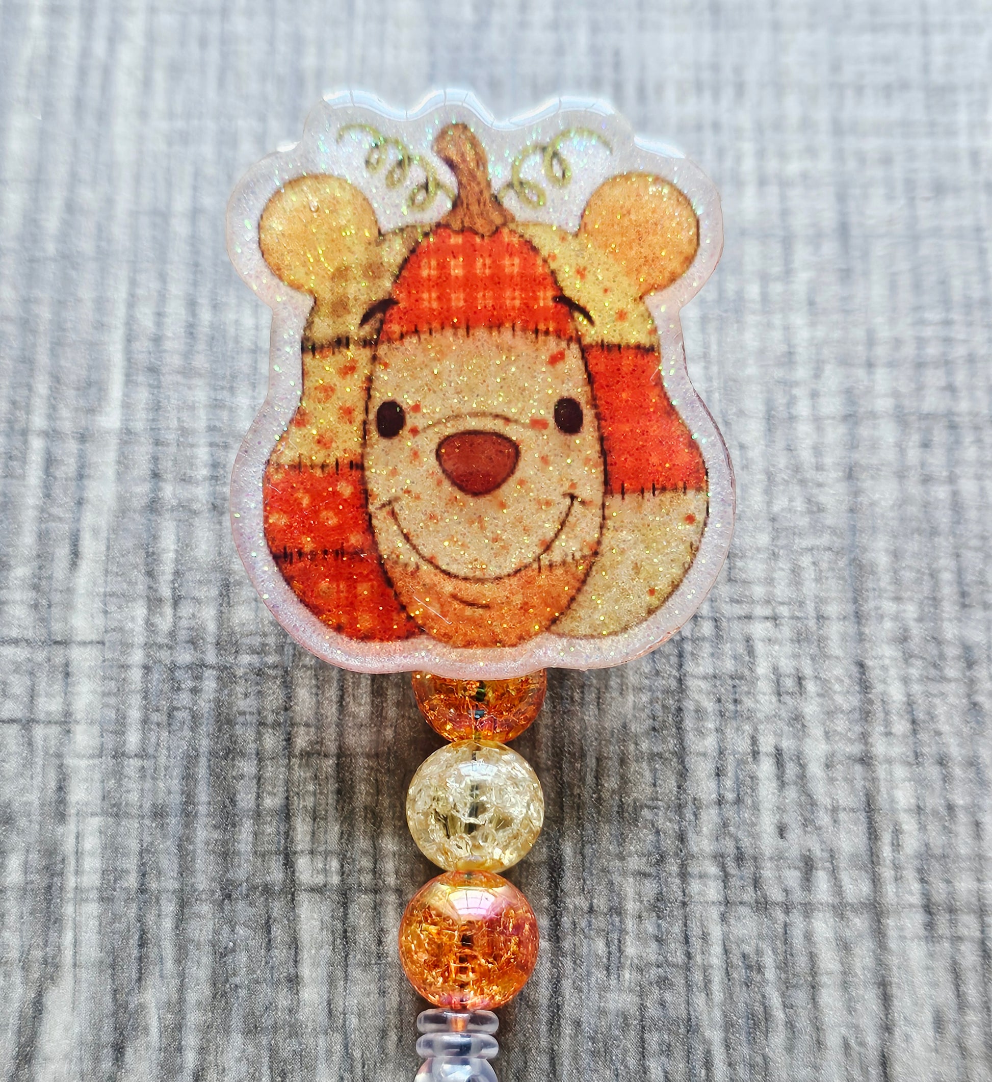 The coordinating beads complement the warm, autumnal colors of the design. This retractable ID holder is a delightful accessory for teachers, pediatric nurses, and Disney fans alike.