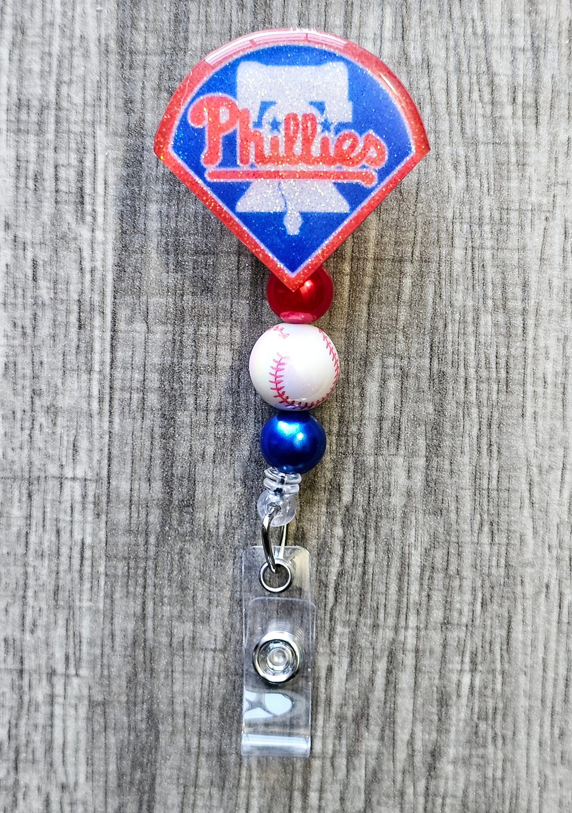 Phillies Baseball-Inspired Badge Reel [Acrylic Glitter]