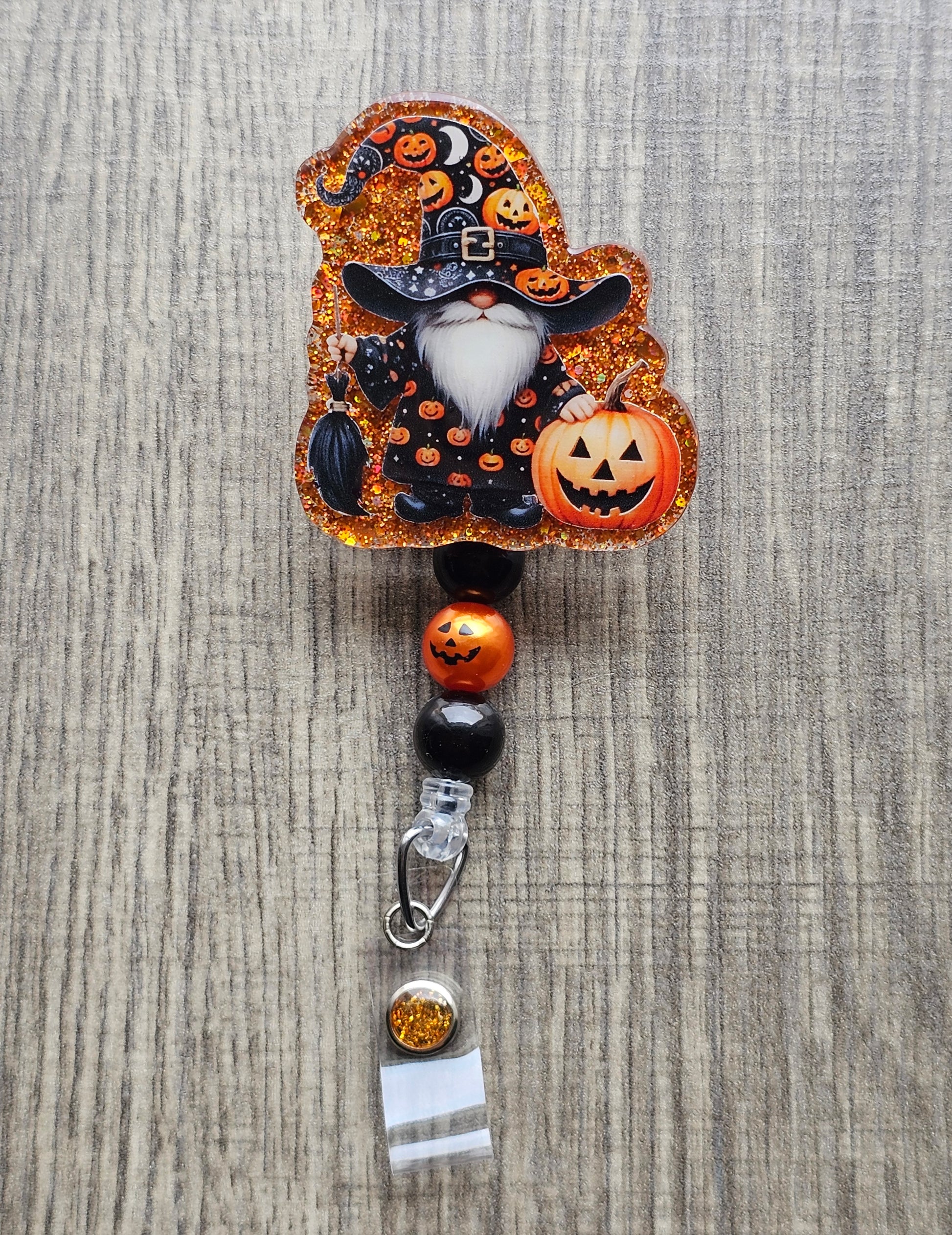 Add a touch of whimsical Halloween charm to your workday with our 'Pumpkin Gnome' Badge Reel! Featuring an adorable gnome dressed in a wizard's costume adorned with pumpkins, holding a broomstick, and standing beside a classic Jack-O-Lantern, this badge reel is perfect for bringing a festive spirit to your attire. Ideal for nurses, teachers, or anyone who loves celebrating the spooky season, this badge holder combines functionality with a playful design that’s sure to enchant everyone you encounter. Let this magical gnome be your daily companion as you navigate through your tasks with a smile!