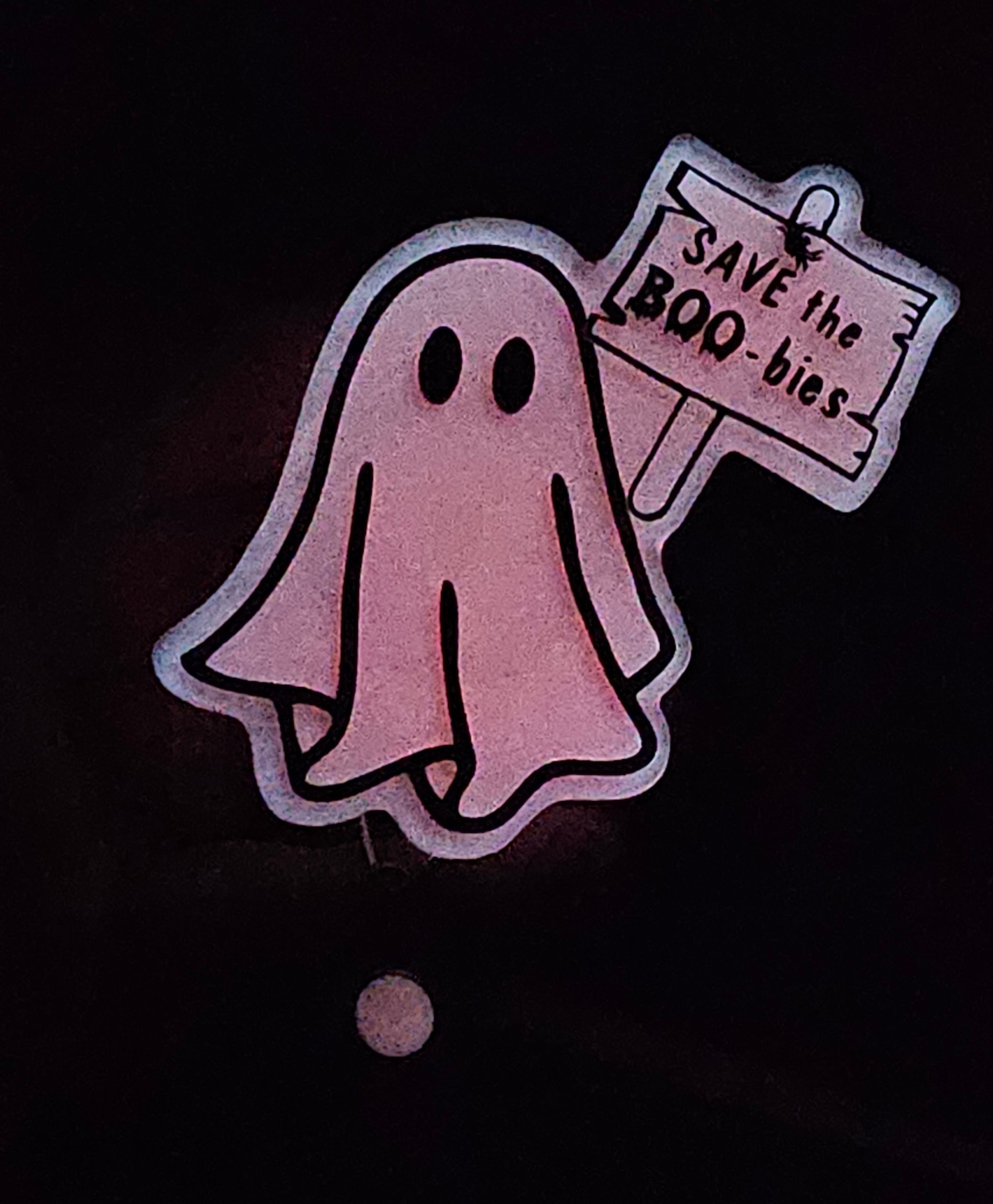 Add a touch of humor to your support for Breast Cancer Awareness Month with our "Save the Boo-bies" Ghost Badge Reel! This adorable and spooky design features a friendly ghost holding a sign that cleverly raises awareness with a smile. Perfect for nurses, teachers, and anyone who wants to show their support in a fun and memorable way, this badge holder combines the lighthearted spirit of Halloween with a meaningful cause. Plus, it glows in the dark, making sure your message shines even in low light! Wear it proudly throughout October and let this ghostly reminder inspire conversations and spread awareness both day and night!