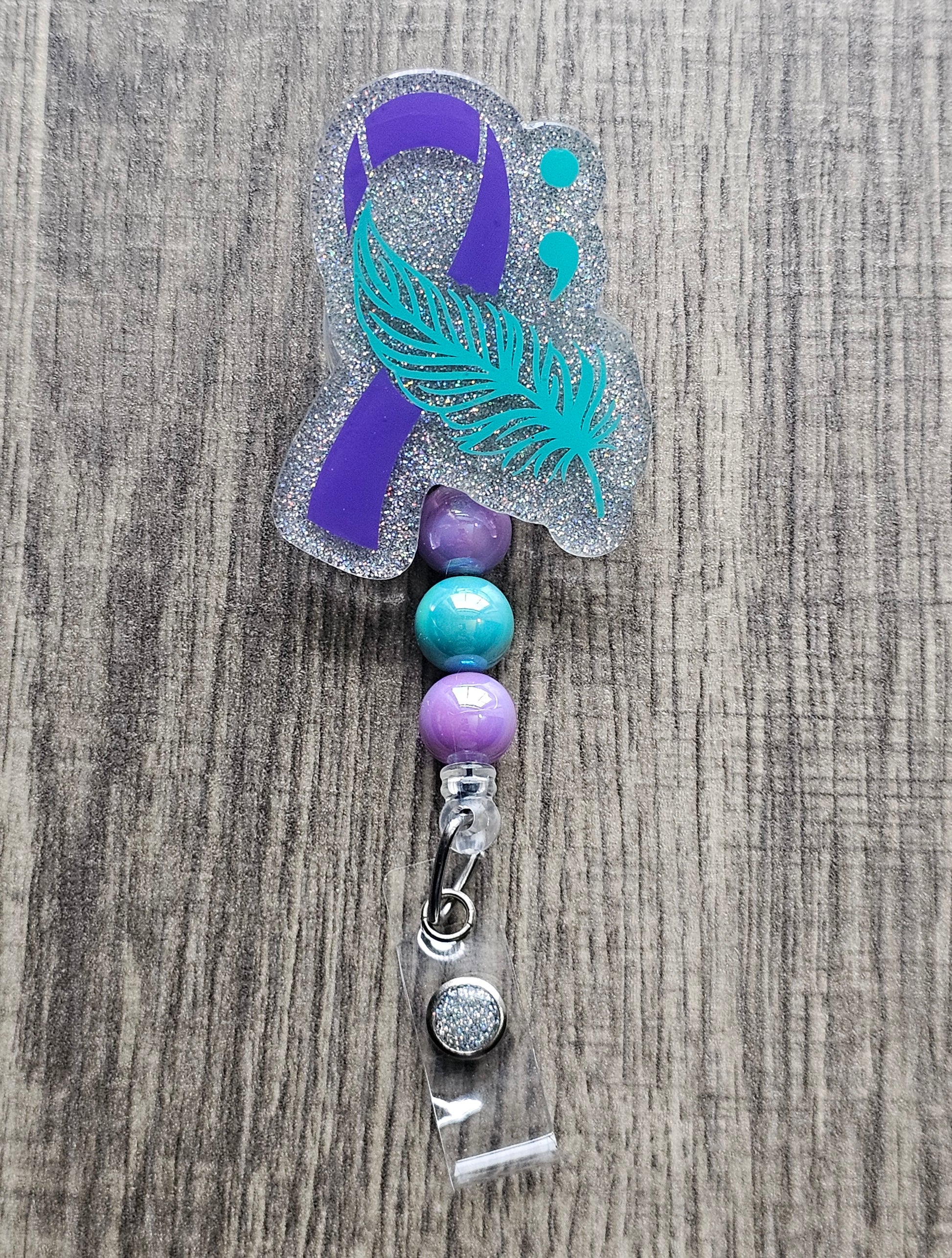 Make a powerful statement with our Suicide Awareness Badge Reel featuring the suicide awareness symbol and a semicolon. This badge reel is more than just an accessory; it's a symbol of hope, resilience, and support for those facing mental health challenges. Ideal for healthcare workers, educators, counselors, and advocates, this badge holder serves as a daily reminder to take a stand against stigma and spread awareness. Keep your ID secure while also sending a message that every story matters and that there's always hope. Let this badge reel be a beacon of encouragement, reminding others that they're not alone.