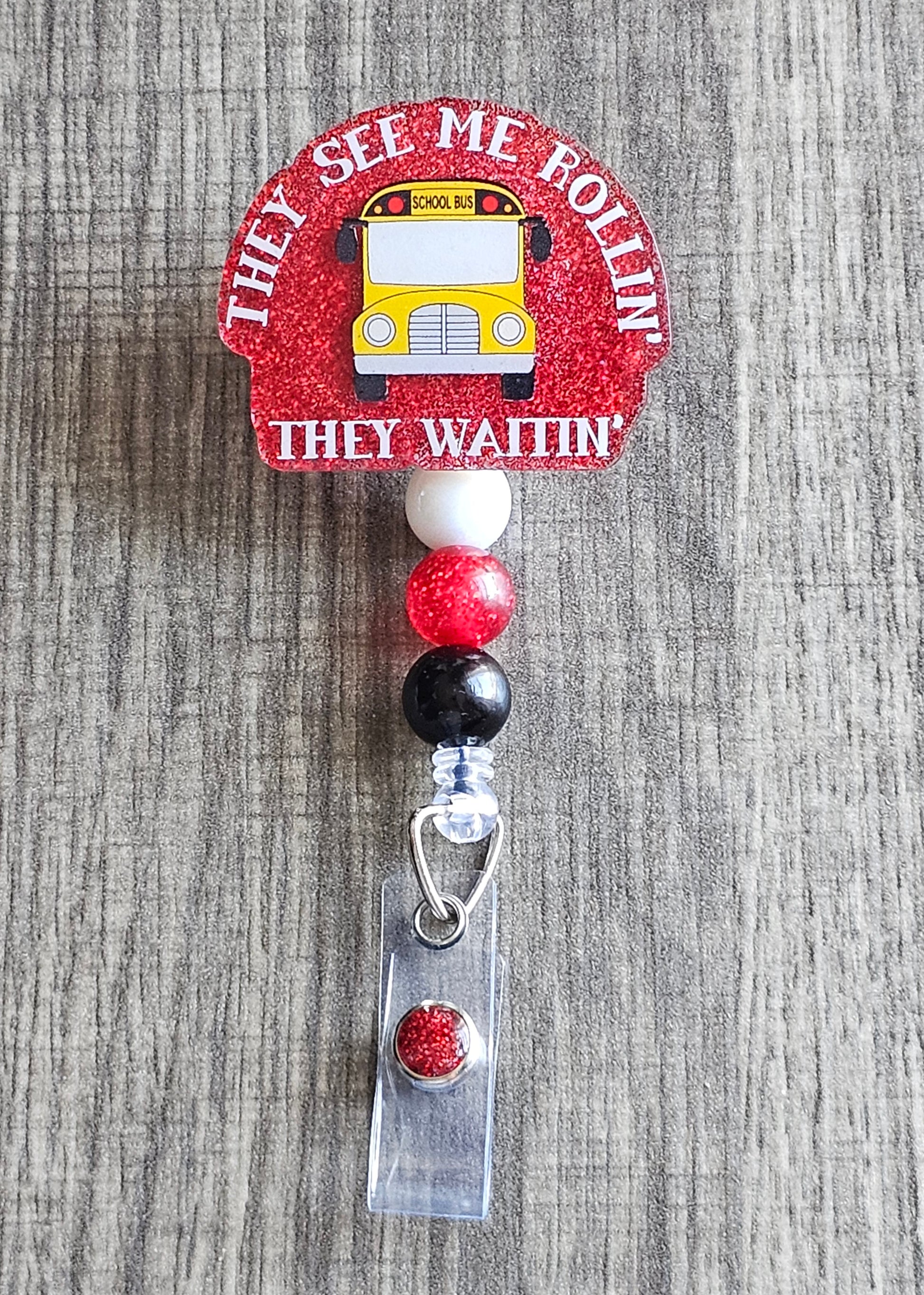Add some humor to your day with our They See Me Rollin', They Waitin' Badge Reel! Featuring a bright, cheerful school bus surrounded by the playful phrase, this badge holder is perfect for bus drivers, school staff, and anyone who loves a good laugh while on the job. It's a fun way to showcase your role in transporting students while keeping your ID easily accessible. Show off your personality and sense of humor with this unique badge reel, designed to make your workday a little more enjoyable! Ideal for daily use, it's practical, durable, and full of charm.