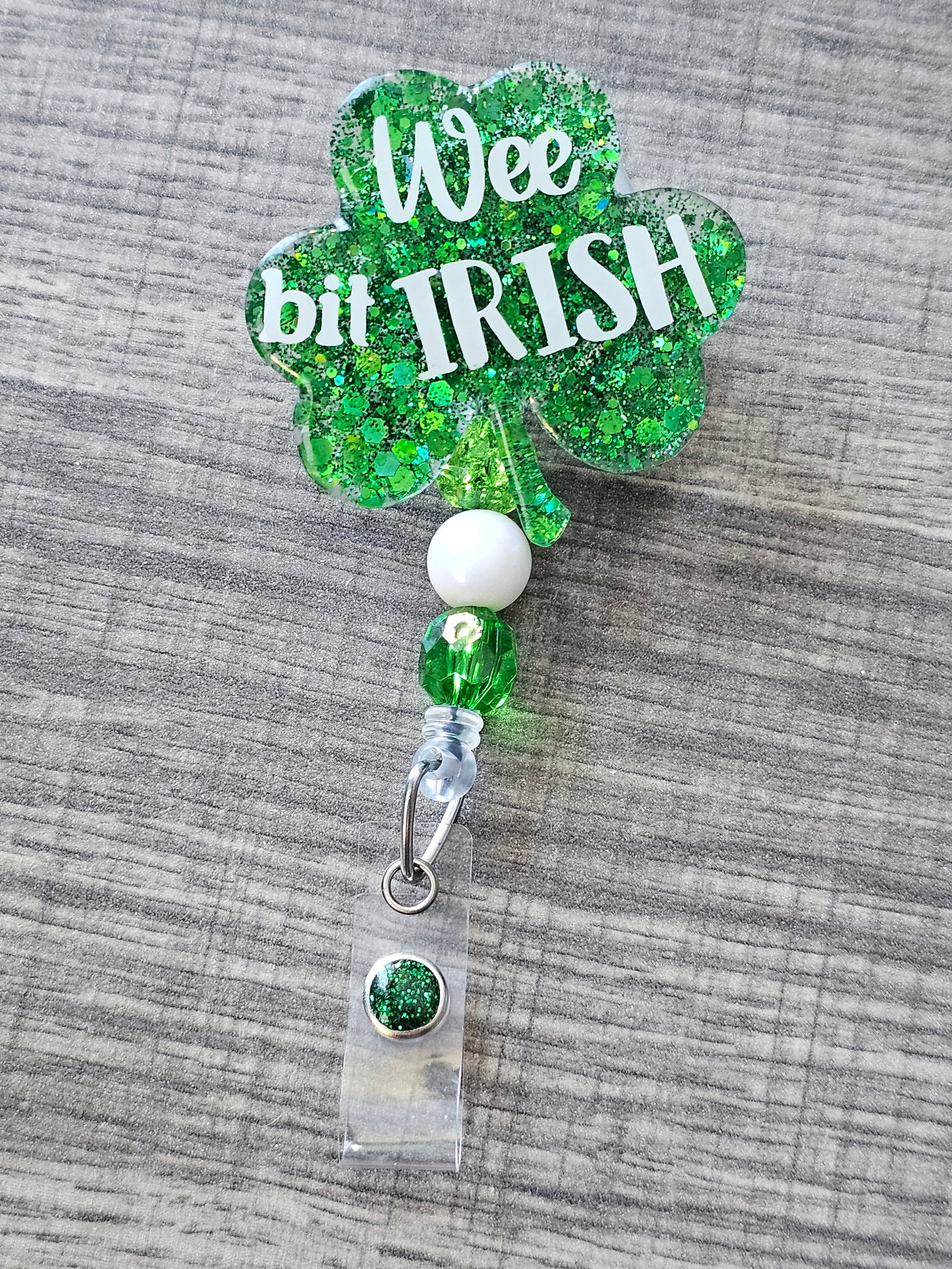 Show off your Irish spirit this St. Patrick’s Day with our charming 'Wee Bit Irish Shamrock' Badge Reel featuring the playful words "Wee Bit Irish." This festive design is perfect for anyone looking to add a touch of fun and personality to their work attire while celebrating the holiday in style.