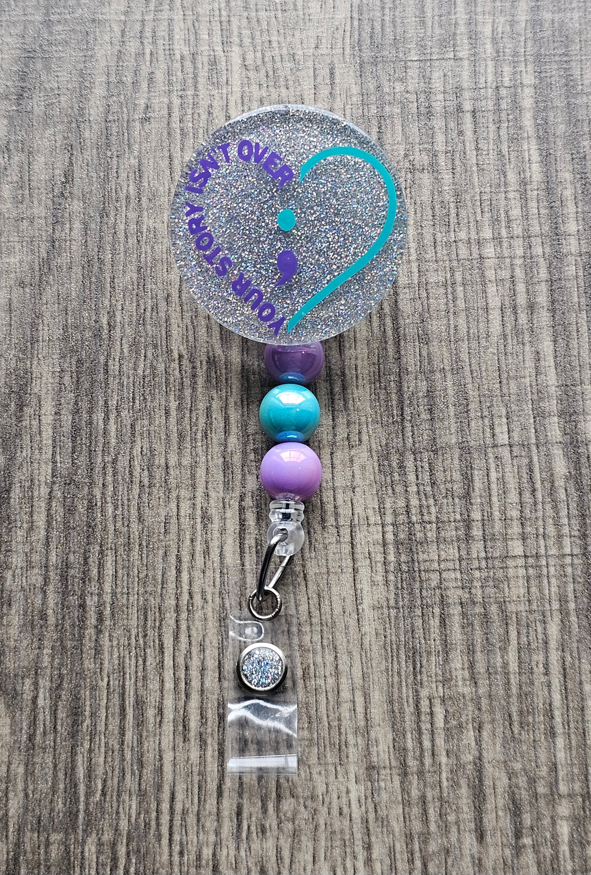 Carry a message of hope and resilience with our 'Your Story Isn't Over' Heart-Shaped Badge Reel. Featuring a meaningful semicolon at its center, this badge reel symbolizes strength and the power to continue through life's challenges. The heart shape adds a touch of warmth and love, making it a perfect accessory for anyone in healthcare, education, or mental health advocacy. Whether you're supporting yourself or others, this badge reel serves as a constant reminder that every story is worth continuing. Secure your ID with style and purpose, and let this accessory spark conversations that matter.